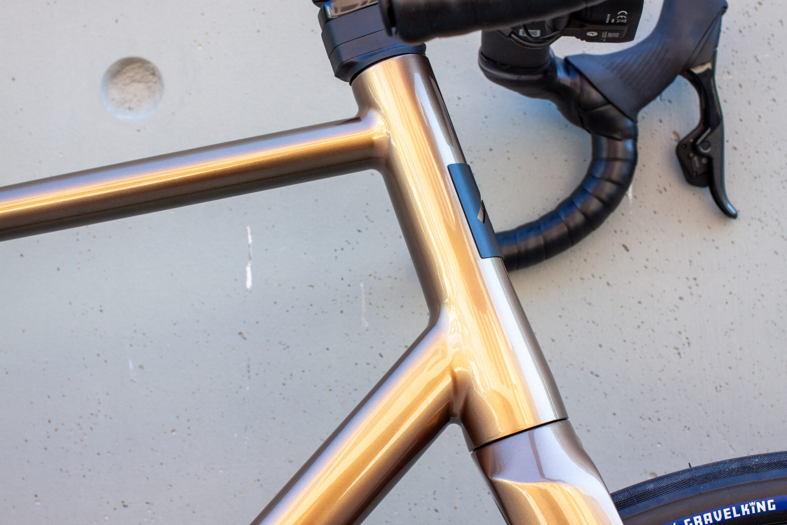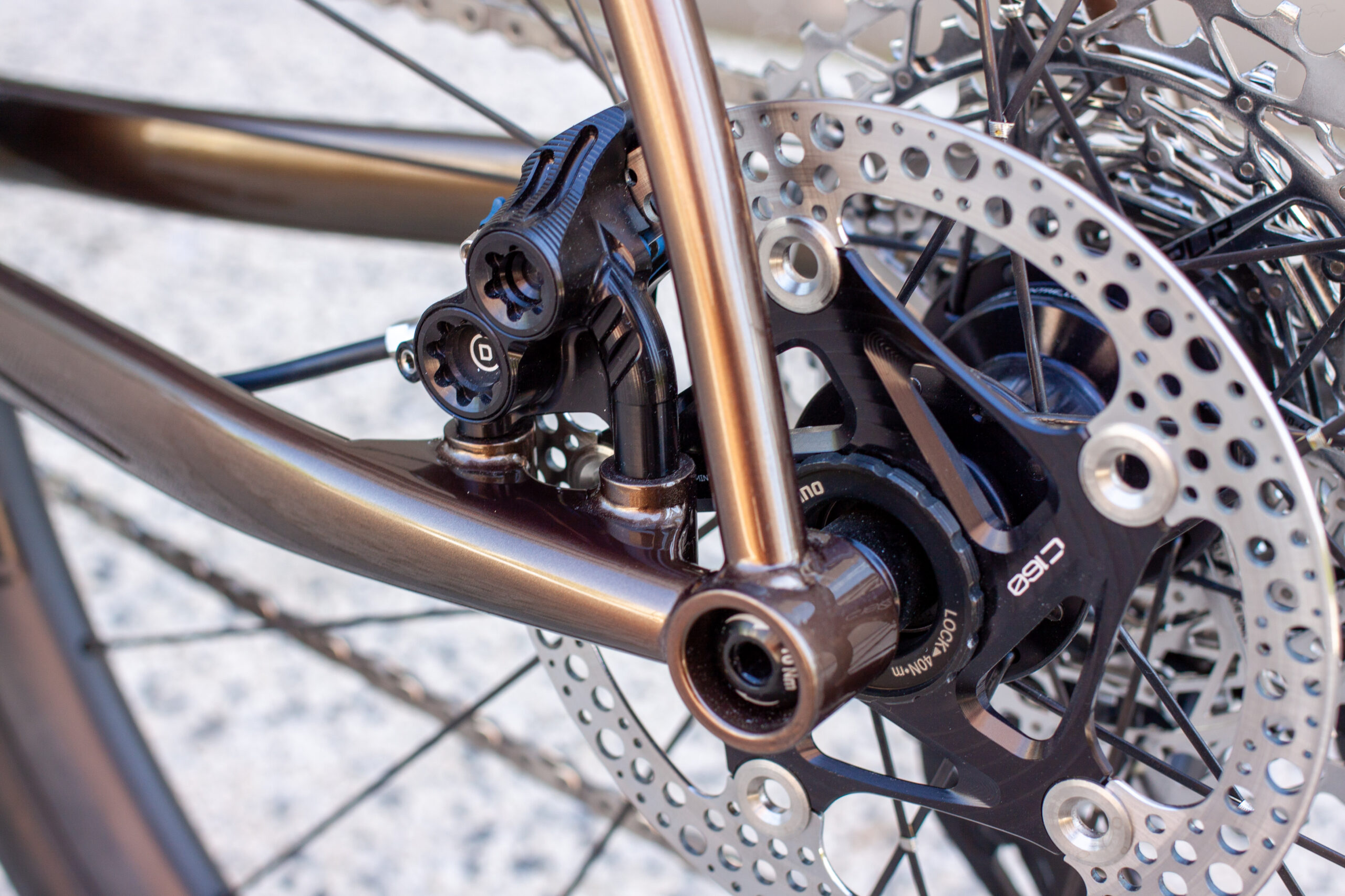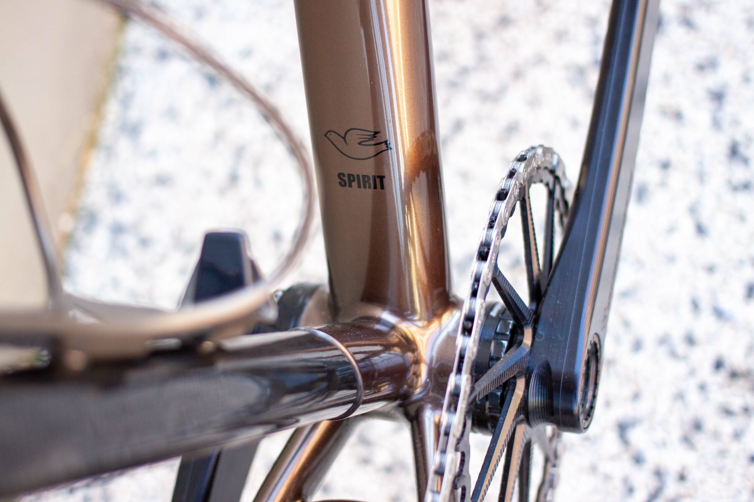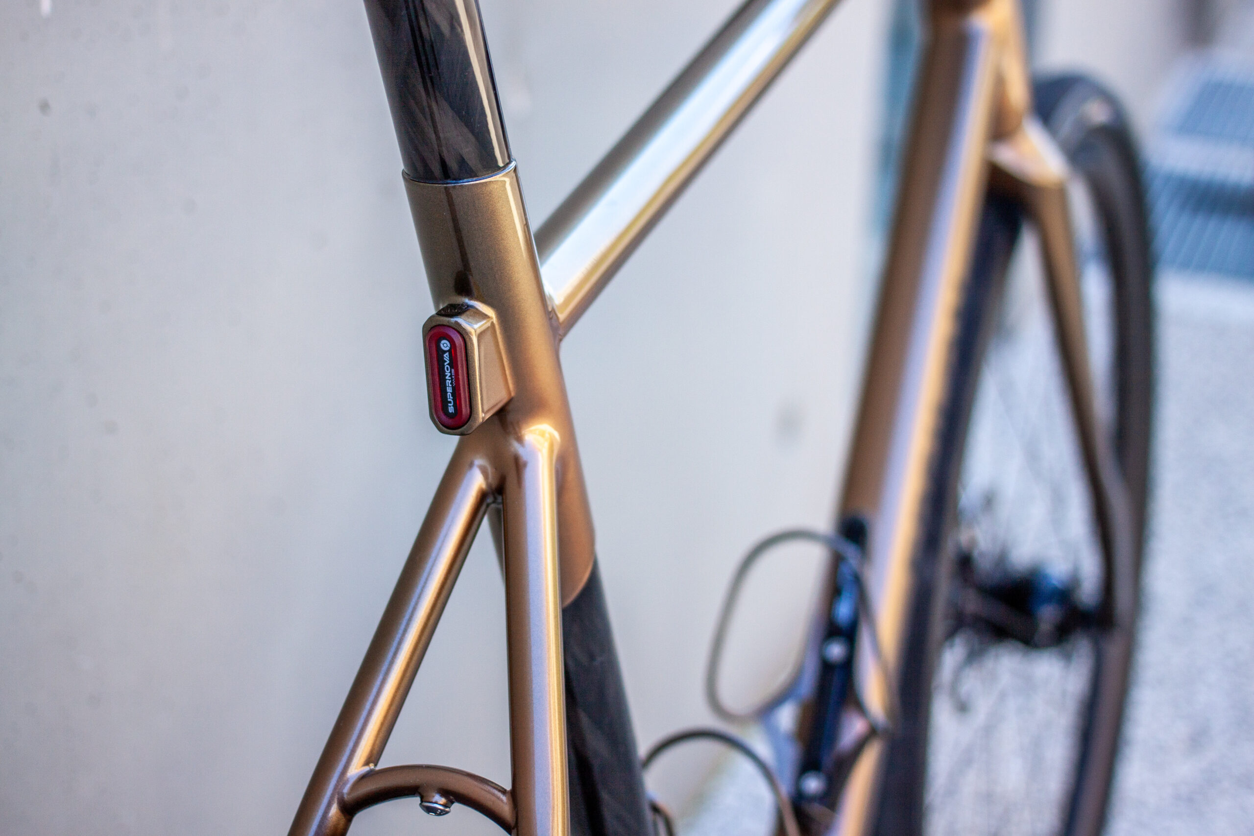 À la croisée de l’acier et du carbone, la jonction entre tube de selle et haubans incarne une construction de cadre à la fois moderne et intemporelle, alliant savoir-faire artisanal et choix techniques affirmés.